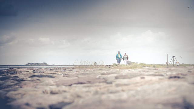 Hier war ich mit Familie Hooge auf der Hallig Hooge. Welch ein cooles Paar. Der Name war die Idee und schon haben wir und in der Nordsee zum Bilderbauen getroffen.